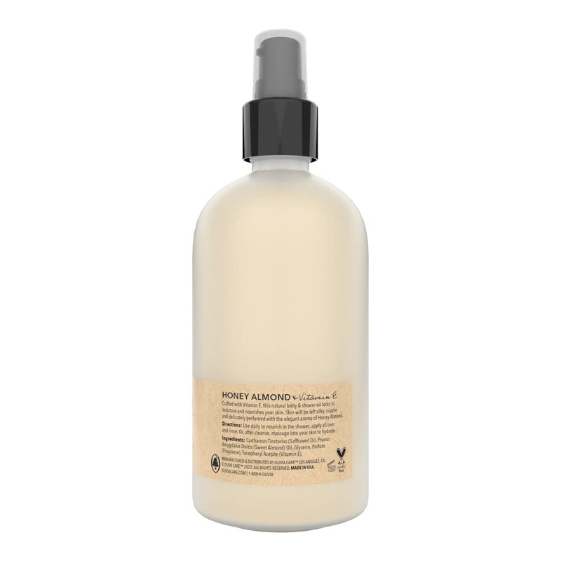 Olivia Care Nourishing Honey Almond Body Oil with Vitamin E: In-Shower Bliss for All Skin Types - 8 Fl Oz. (Honey Almond and Vitamin E)