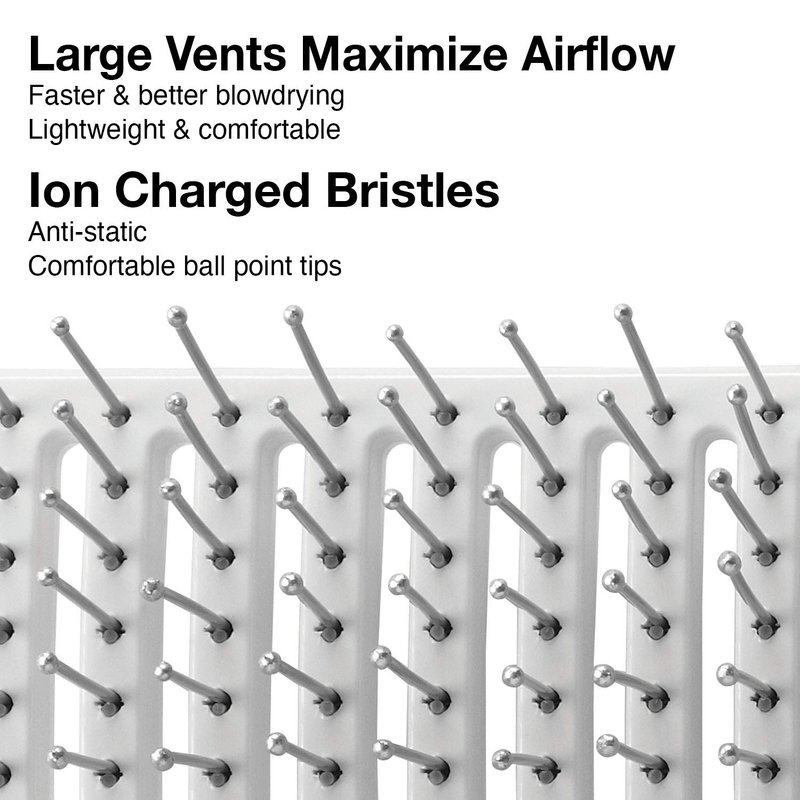 - Ion charged bristles & cushion