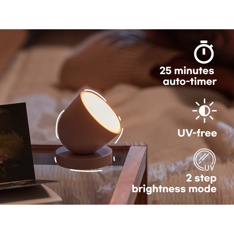 Olly Light Therapy Lamp - UV-Free LED with 140g Compact Size for deep Sleep, Rechargeable, 2step Brightness Mode, 25minutes Automatic Timer - Daily Sunlight to Sleep Well