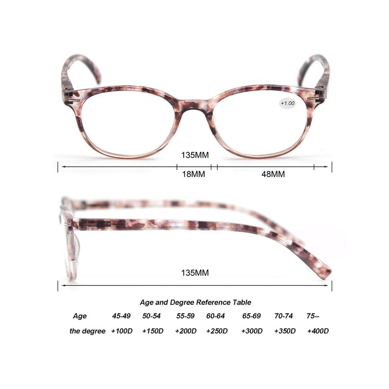 - [3 Leopard Reading Glasses]-Lens width:1.9in,Bridge width:0.6in,Arm width:5.4in. 1 PCS womens reading glasses is 22g/0.066lb.Resin aspherical lens, no distortion.