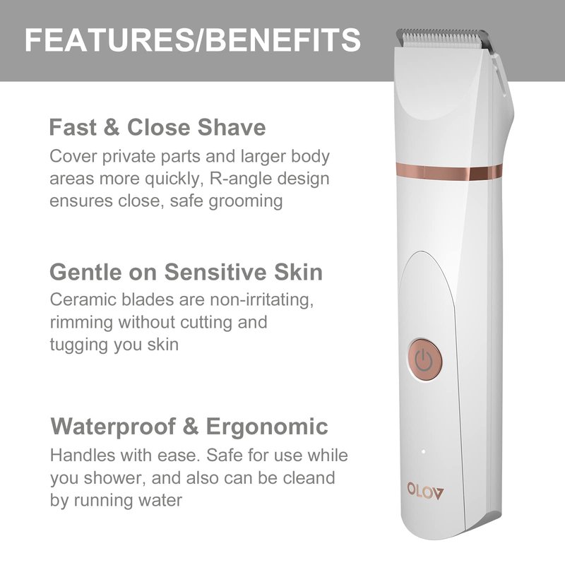 OLOV Bikini Trimmer Women - Wet/Dry Body Shaver Groomer, Replaceable Ceramic Blade Heads, USB Recharge Dock & Nosetrimmer Head Heads, Waterproof Male Hygiene Razor, White