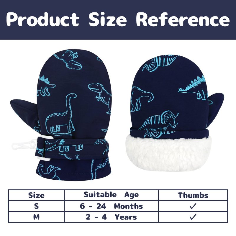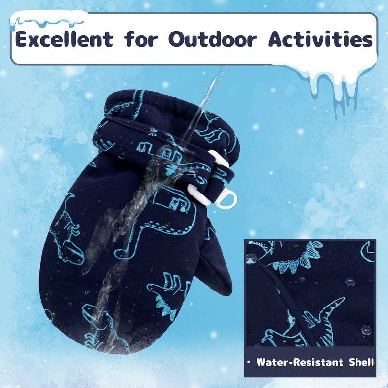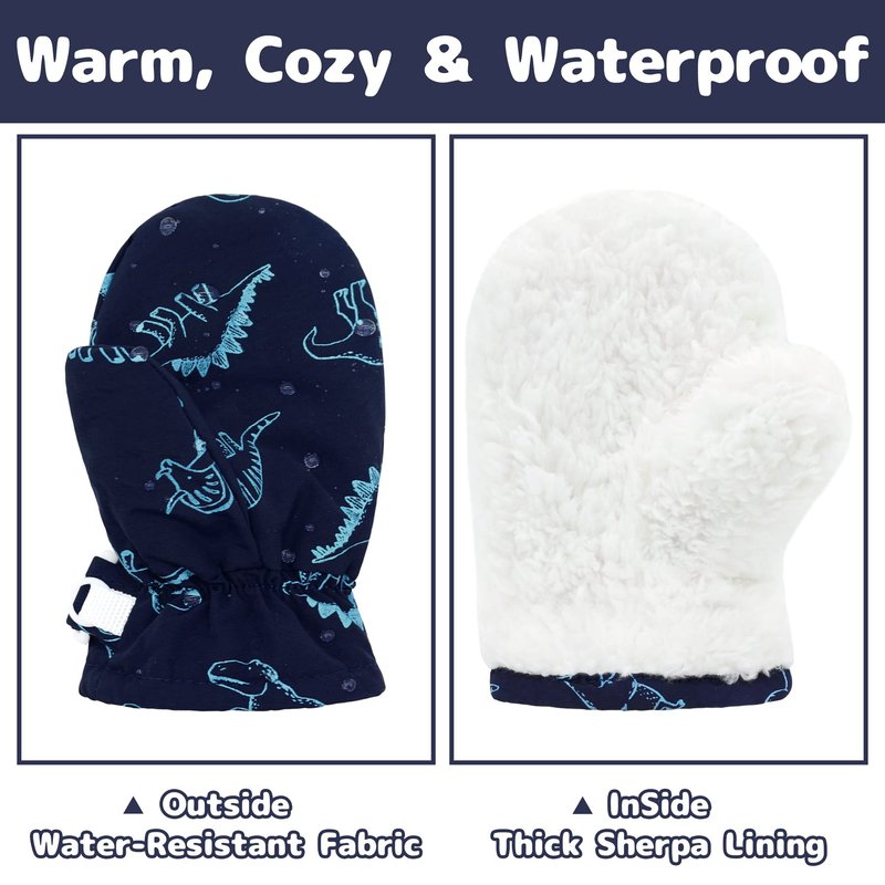 - LOVELY & UNIQUE DESIGN: These toddler waterproof gloves have cute dinosaur patterns which can attract baby's attention and make the baby more curious about the unknown world. Adorable time-tested design that comes in several different colors to match all your baby's autumn&winter cold weather clothing. The ideal designs are both loved by parents and babies.