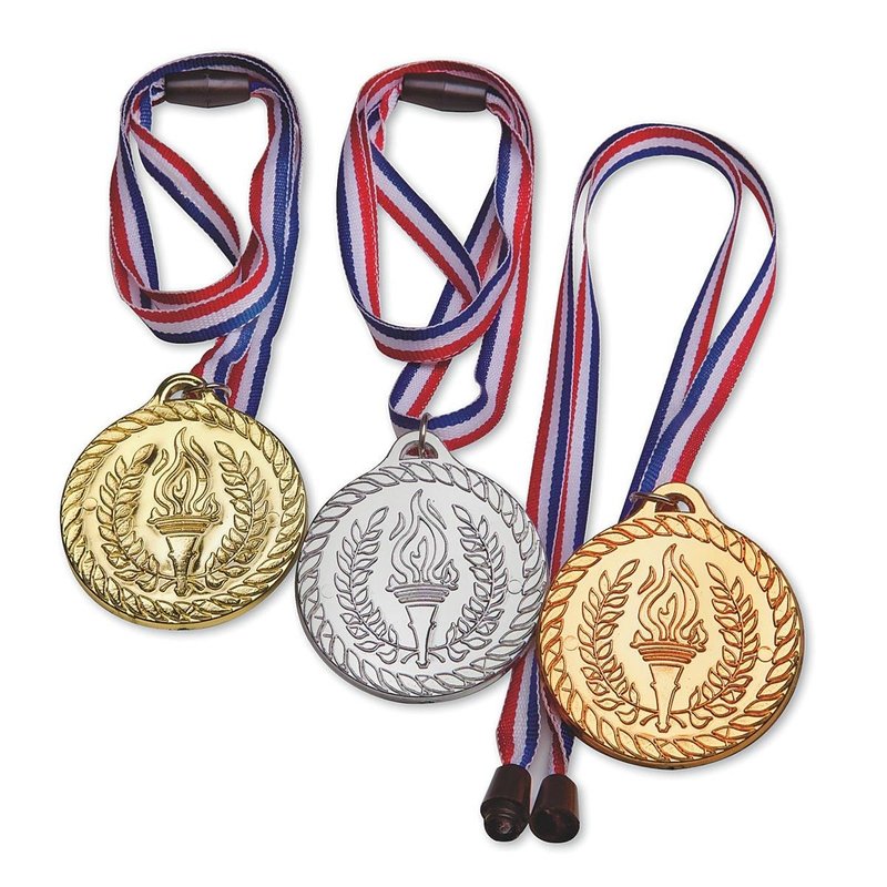- Pack includes 12 plastic medals (2-1/8”); four each gold, silver, and bronze