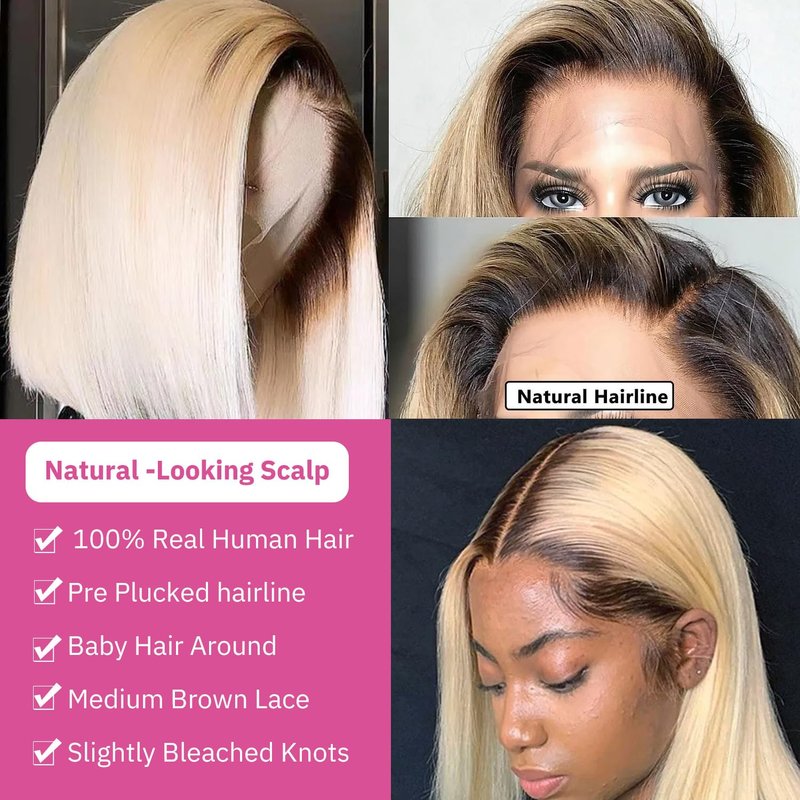 - 【Glueless Ombre Blonde Bob Wig Human Hair Pre Plucked】: Ombre Blonde Bob wig human hair pre plucked HD transprent lace front wigs can be dyed to any color, takes color easily & well, the color comes out very pure, no worry any uneven tracks showed. Very light brown swiss HD transparent lace, soft and invisible, melted well with any skin tones, friendly to beginner,easy to install.