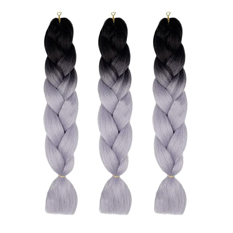 Ombre Braiding Hair Extensions 3 Pack/24 Inch Color Braiding Hair Fiber Crochet Hair for Box Braids Senegal Twist Hair Extensions for Women and Girls (24 Inch, Black/Gray)