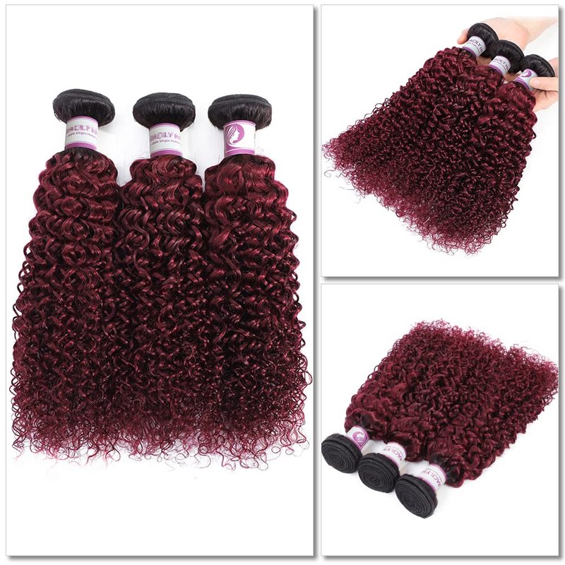 Ombre Dark Red Curly Weave Human Hair 3 Bundles 99J Brazilian Curly Hair 100g/Bundles Burgundy Kinky Curly Human Hair Extensions for Black Women (10"12"14")