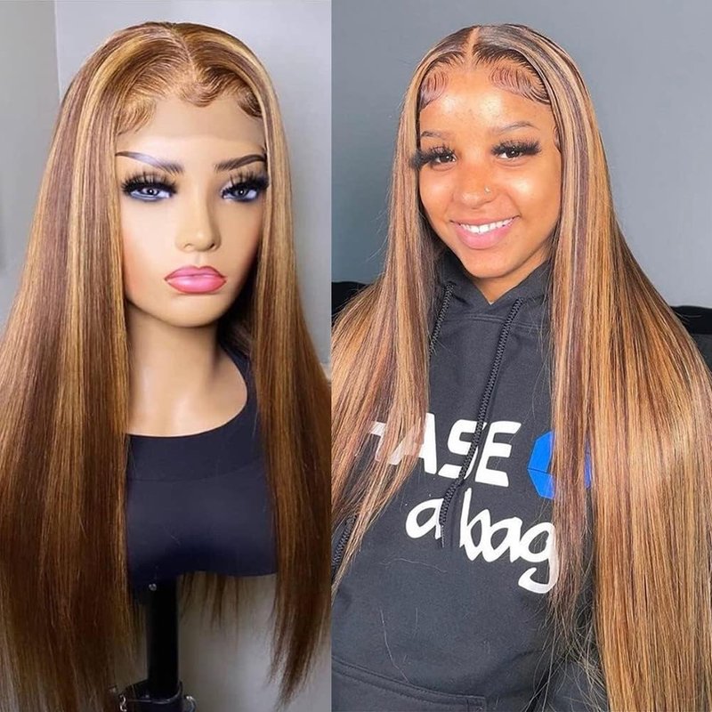 Hair Color and Wig Fe★【 Highlight Straight Lace Front Wigs Lace】Blonde Highlight Wig Human Hair, Transparent Lace Can Melt Into Any Skins. This Lace is More Thin and Undetectable, Can Blend with Anyone’s Skin Tone Who Wears the Wig Comfortable Against Skin and it's Beginner Friendly.atures: highlight 4/27 color lace front wigs ,free part with baby hair natural-looking baby hair all around perimeter, soft touching, resilient texture and glossy beauty are the most outstanding features of this hair.