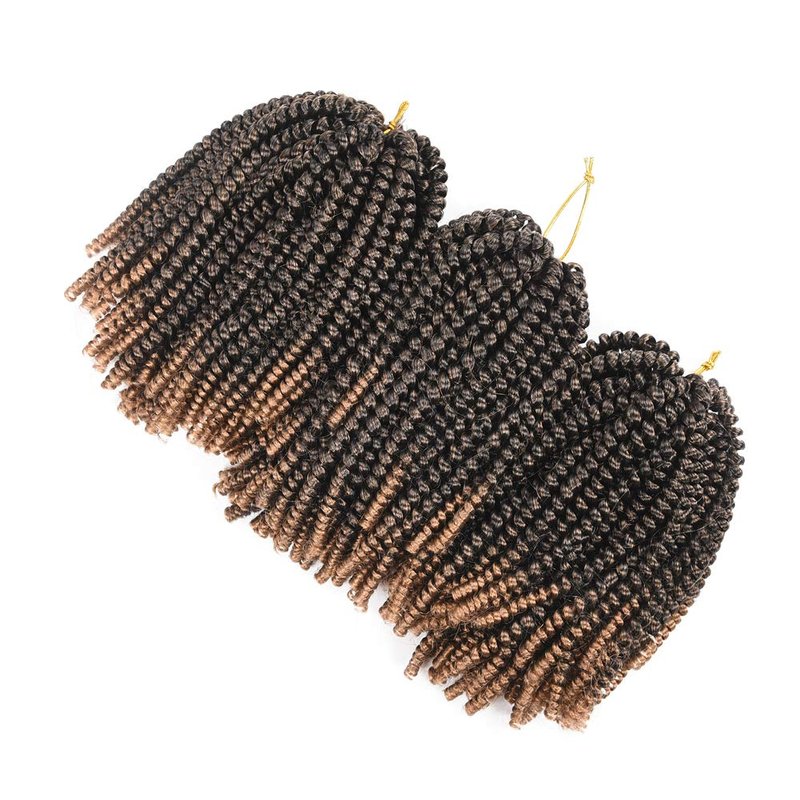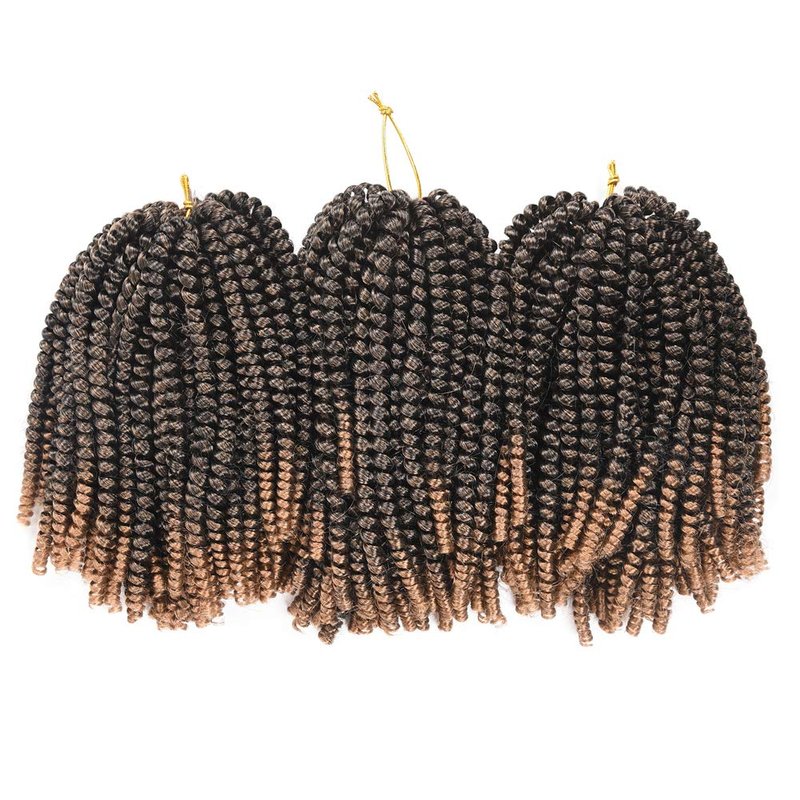 Ombre Spring Twist Hair 8Inch Crochet Braids Short Curly Synthetic Braiding Hair Extensions Low Temperature Fiber 30Strands /pack 3packs sale (T27)
