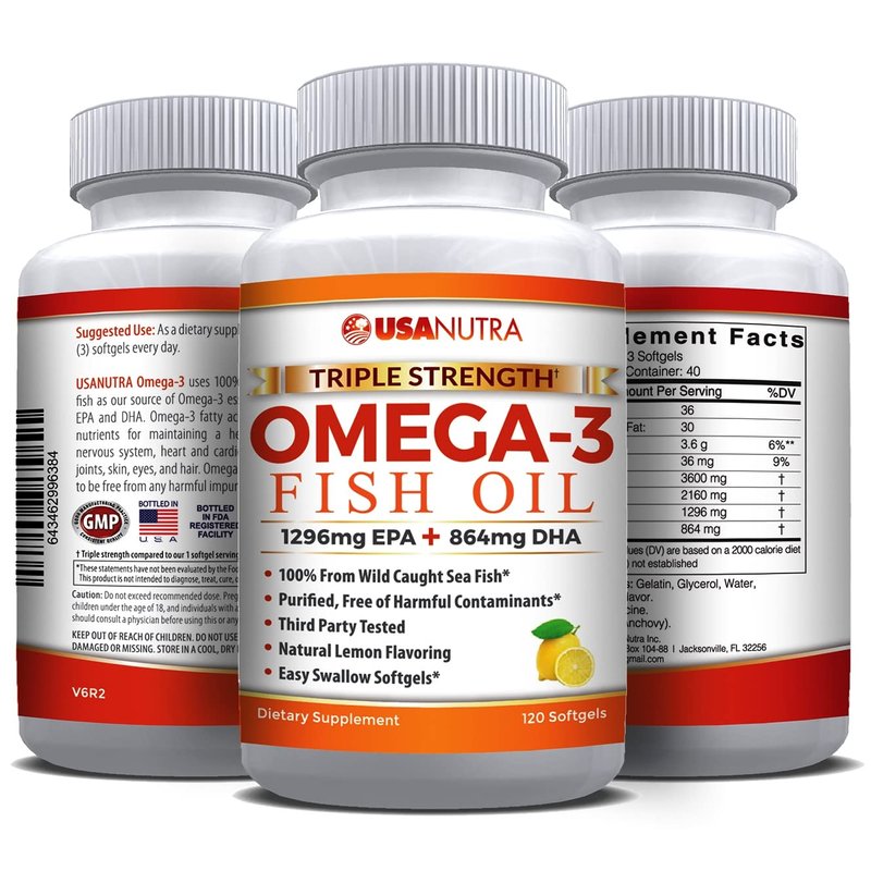 USANUTRA TRIPLE STRENGTH OMEGA-3 FISH OIL 100% FROM WILD CAUGHT SEA FISH.