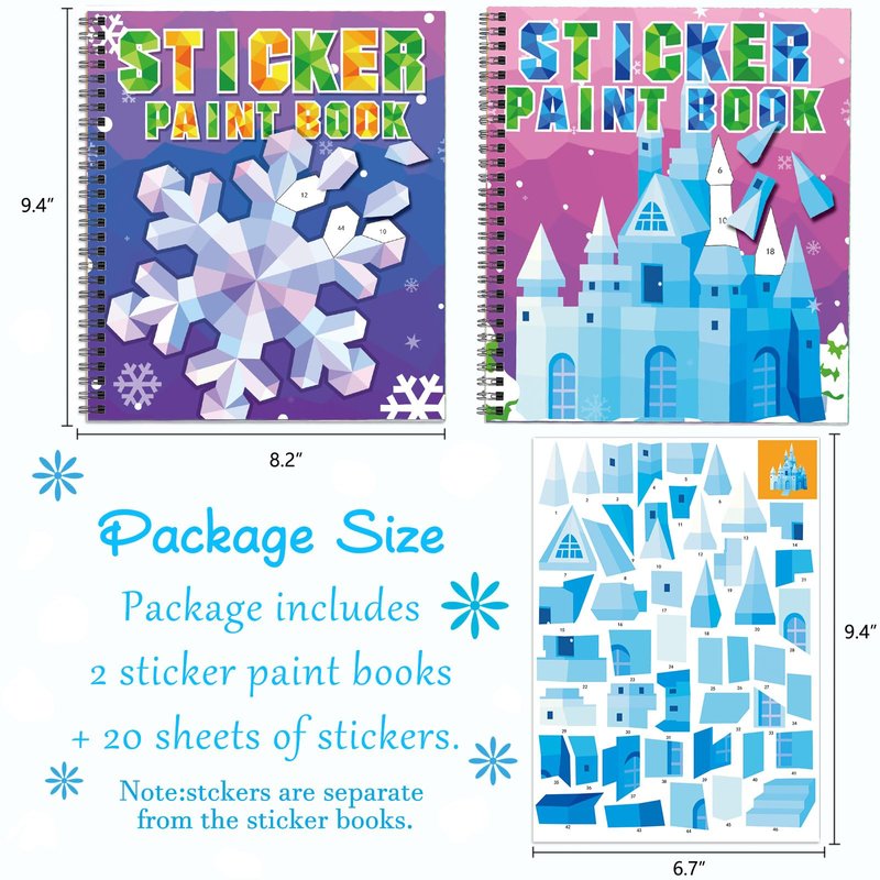 - Winter Sticker Paint Book: Include Elf Ice castle Penguins Snowman Gingerbread house snowflake and more.Perforated pages make this easy for kids to navigate themselves. Great quiet time activity for kids who focuses intently on the stickers and finding the correct places to place them.