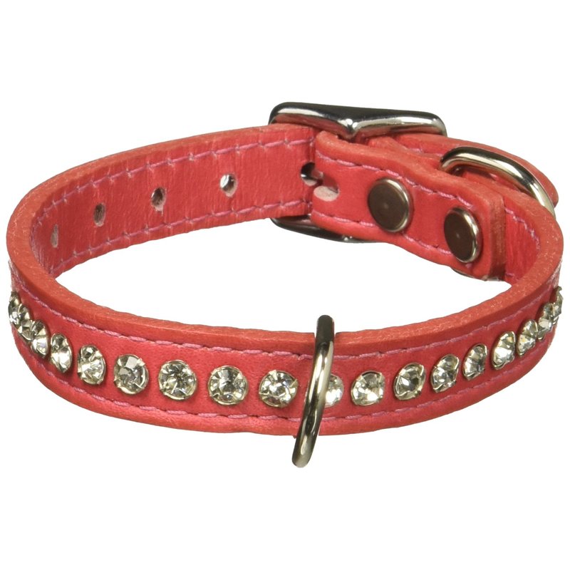 OmniPet Signature Leather Crystal and Leather Dog Collar, 12", Salmon