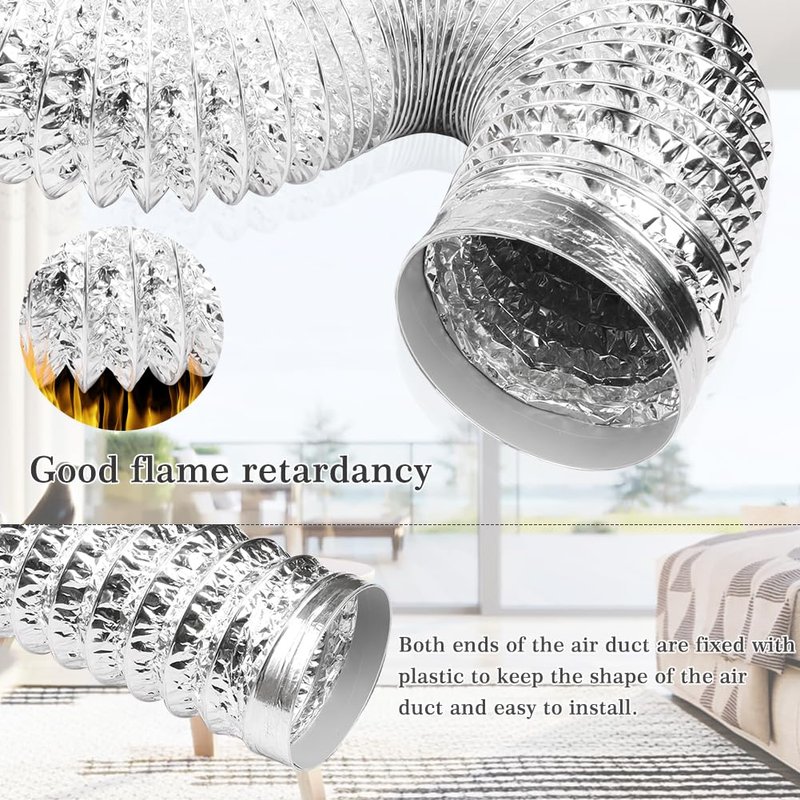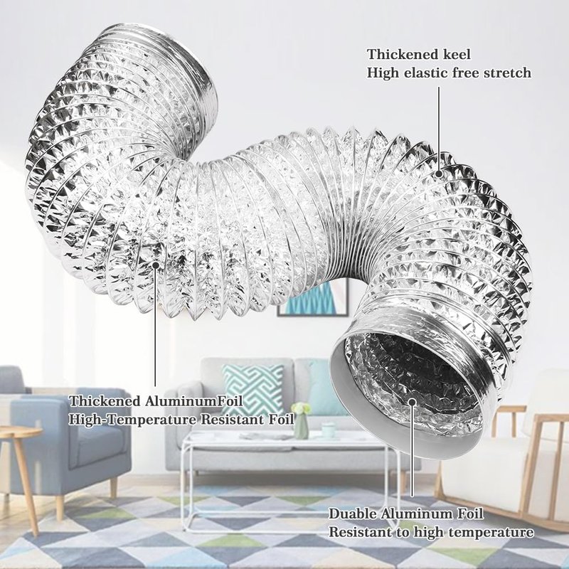 - ADVANCED THREE LAYER : Under the PVC layer the dryer duct hose is built with 2 layers of aluminum foil. A layer of durable PET and steel wire helix to preserve the shape, keep your ventilation system free of rips and pin holes.
