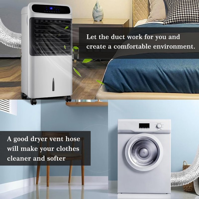 - EASY TO INSTALL : Flexible and simple to Install the dryer vent hose. The dryer duct comes with two clamps to fixed the air ducting.Simple, convenient and durable.