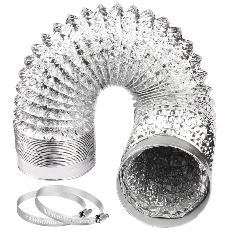 - HOSE + 2 CLAMPS: The dryer vent hose is made by high-quality aluminum (High Temperature Resistant & Corrosion Resistant & Long Lasting); The Clamps are made by stainless steel (Rustproof & Corrosion Resistant & Heavy Duty).