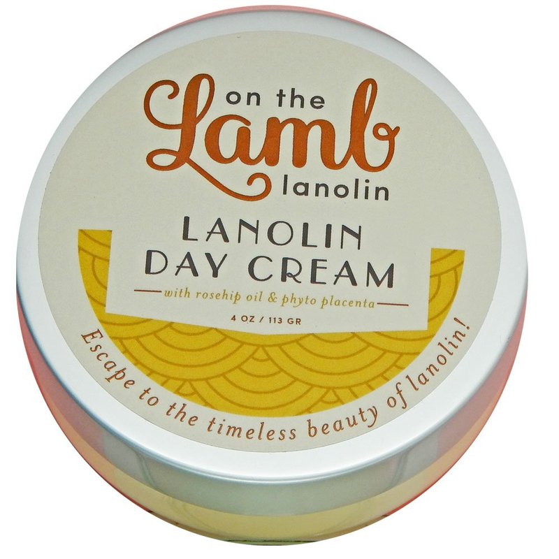 Lanolin Day Cream 4oz/113gr On the lam (to escape) – On the Lamb: Escape to the beauty of lanolin! On the Lamb is part of an American Retro Beauty project that seeks to reinvent iconic beauty products of the 30’s to the 50’s. Lanolin was a top ingredient back then, and served as basis for products that were simple, inexpensive, and highly effective. This Day Cream is designed to create a lanolin skin barrier that serves to prevent dehydration. Fast-absorbing and non-greasy, this Day Cream is excellent for use under makeup. Major innovations are the use of Phyto Placenta, a plant extract that effectively replaces sheep placenta, and a plant replacement for silicones that is ecocertified and rapidly biodegradable. Super moisturizing ingredients provide suppleness and elasticity: shea butter, sweet almond oil, elastin, and collagen. Royal Jelly and Propolis enhance skin health. No artificial fragrances or colorants.
