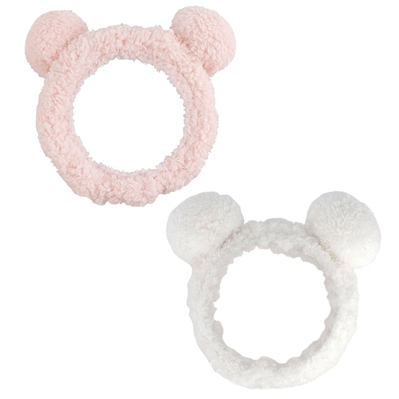 Ondder 2 Pack Bear Head Bands Cute Headband for Washing Face Skincare Head Bands for Girls Pink White