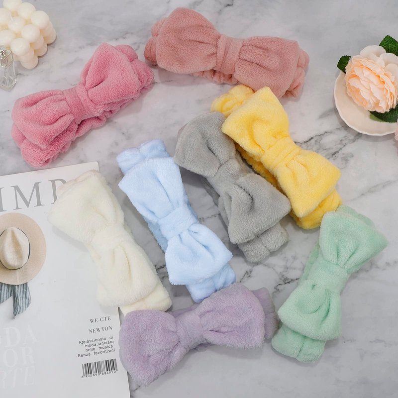 Ondder 8 Pack Spa Headband for Washing Face Makeup Skincare Headbands Bowknot Facial Headbands Fluffy Shower Spa Cosmetic Face Wash Headbands Head Bands for Washing Face for Women Girls