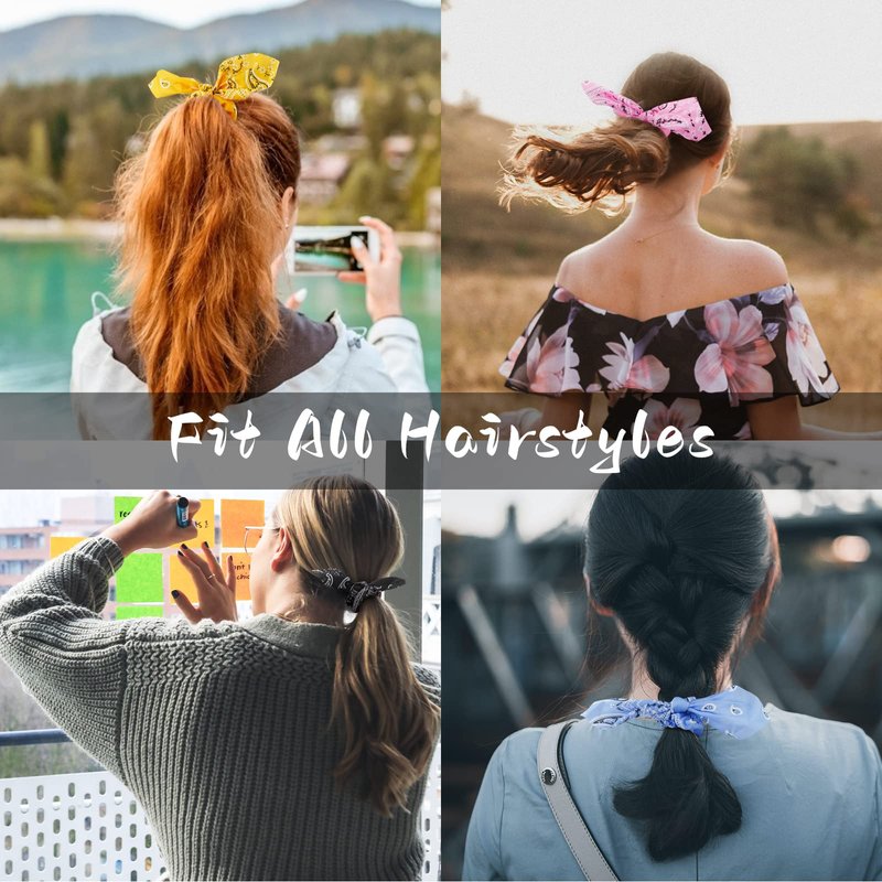 - Soft & Durable: These bandana hair ties are made of premium fabric with exquisite workmanship, friendly for hair, comfortable to wear. This hair scrunchy is not only can hold your hair, but also can be a decoration on your hand.