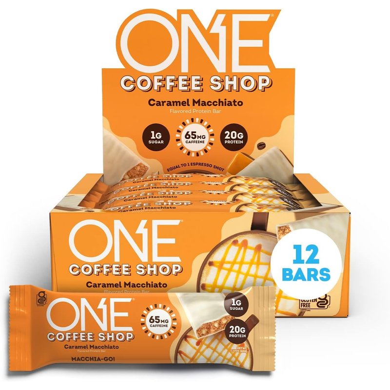 ONE Coffee Shop Caffeinated Protein Bars, Caramel Macchiato, Gluten Free with 20g Protein and 65mg of Caffeine Energy, Pantry Staples, 2.12 oz (12 Count)