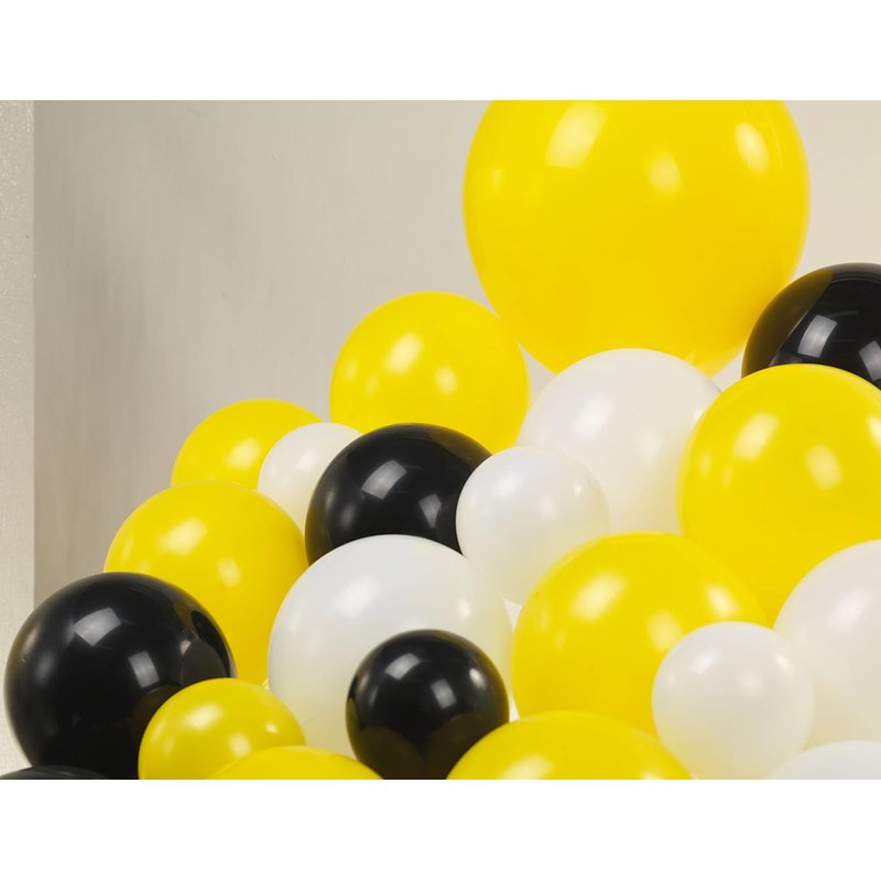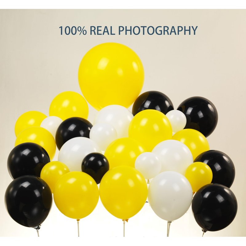 - 【Happy Dude Balloons Garland Kit】You will get 125pcs latex balloons (color in Yellow, Black, White.Size in 5inch, 10inch,12inch,18inch, with 2pcs star burst balloons + 3psc checkered foil balloons), 3pcs balloon arch accessories: Glue dots,ribbons,arch strip for DIY Balloon arch kit.