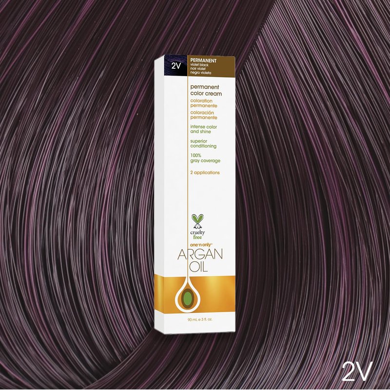 One N' Only Permanent Hair Color - Permanent Hair Dye Made with Argan Oil - Delivers Rich, Accurate Tones with Gray Coverage - Improves Moisture & Elasticity - 2V Violet Black (3 oz)