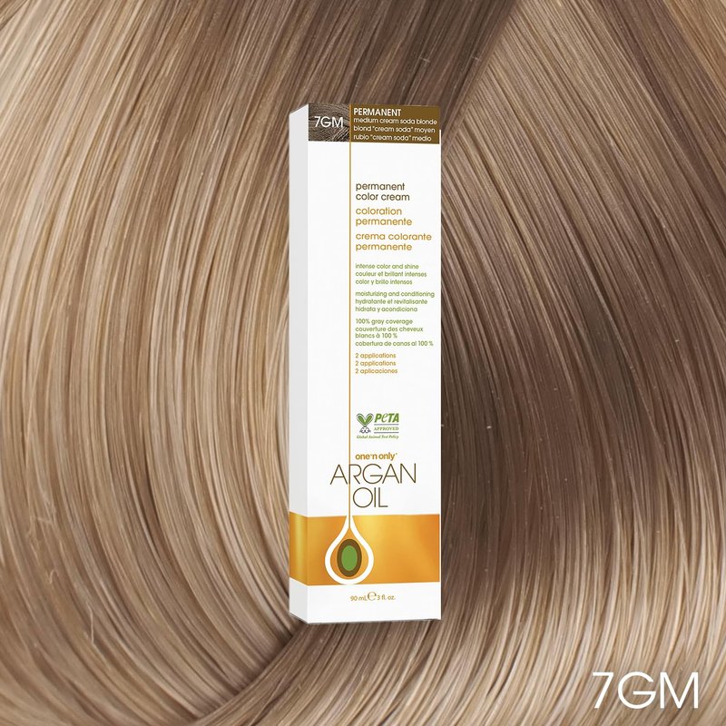 One N' Only Permanent Hair Color - Permanent Hair Dye Made with Argan Oil - Delivers Rich, Accurate Tones with Gray Coverage - Improves Moisture & Elasticity - 7GM Medium Cream Soda Blonde (3 oz)