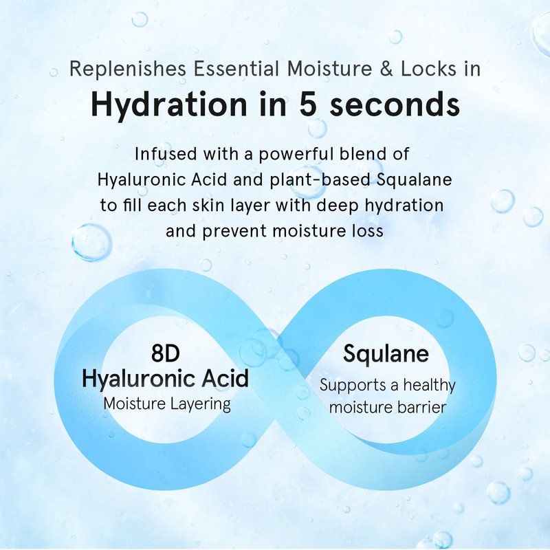 - [5-SECOND MOISTURE LOCK-IN] : Formulated with 8 types of multi-weight Hyaluronic Acid Complex this lightweight korean face serum visibly hydrates, plumps and soothes skin from within without any stickiness.