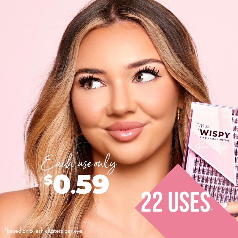 - Flawless Fake Eyelashes: It’s finally time, Miss Wispy Lash Clusters are here! Designed by lash artists, One V Salon's DIY Lash Cluster Glam Wisp C Curl false eyelashes can help you achieve the perfect extension look right at home
