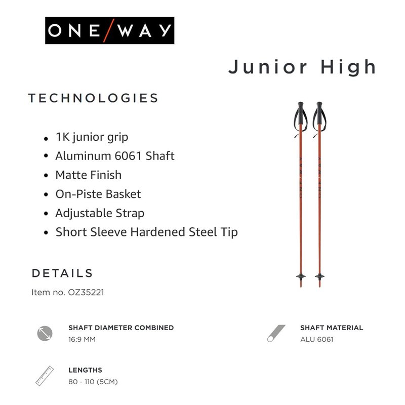 - LIGHTWEIGHT & DURABLE ALUMINUM SHAFT - Crafted from high-quality 6061 aluminum, the One Way Junior High Poles are lightweight yet highly durable; The sturdy construction ensures that they withstand the rigors of multiple seasons, offering long-lasting performance on the slopes