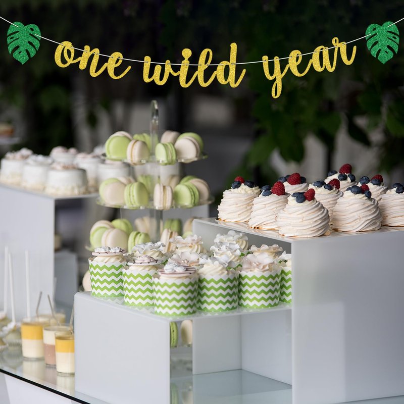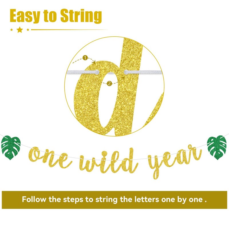 - ❤️【Package Includes】: 1 pcs gold and green glitter of "One Wild" banner, shiny color and beautiful design can decorate your party well.