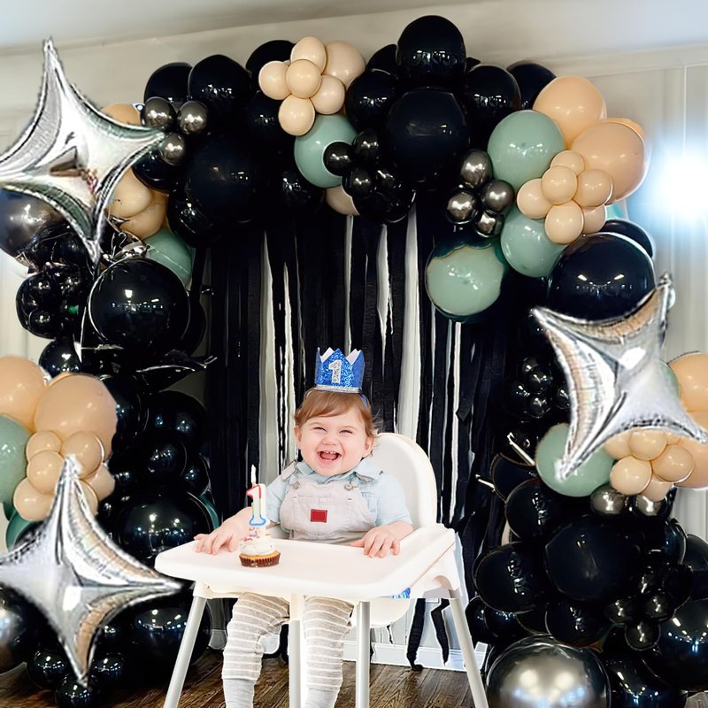 - Special design: The balloon group is composed of black, sage green and silver, with onyx black and as the main colors. All balloons are made of natural latex, and other balloon accessories are made of PP. All materials are high quality and safe, very durable, non-toxic and tasteless.