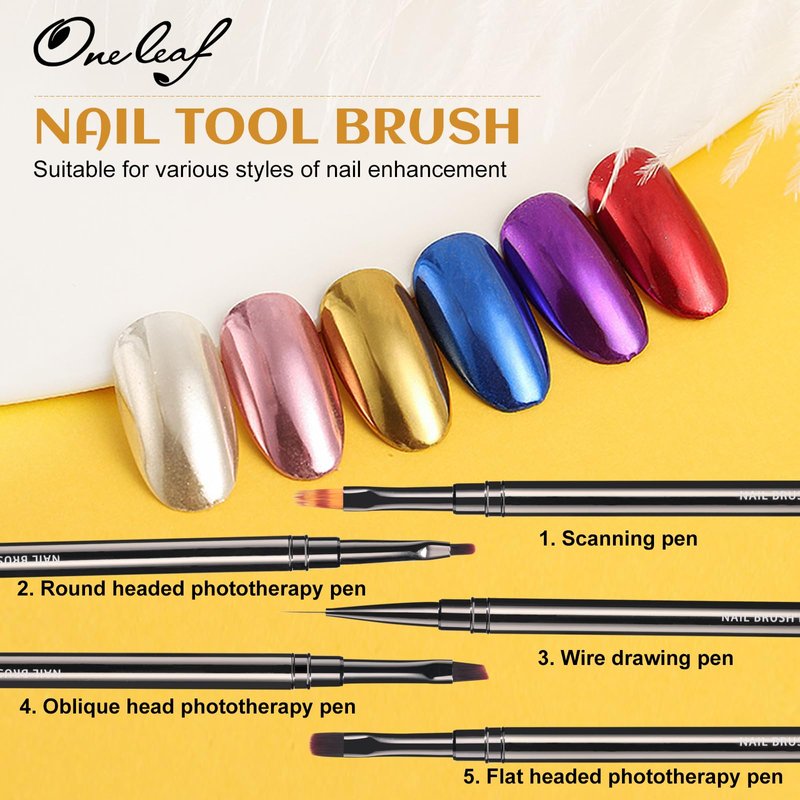 Oneleaf Nail Art Brushes Set-5PCS Nail Tool for Nail Art U V Gel Nail Brushes, Acrylic Nail Brushes, Liner Brushes, Dotting Tools, Dust Brush, Dual End Drawing Pen, Nail Design Kit for Nail Salon Home Use