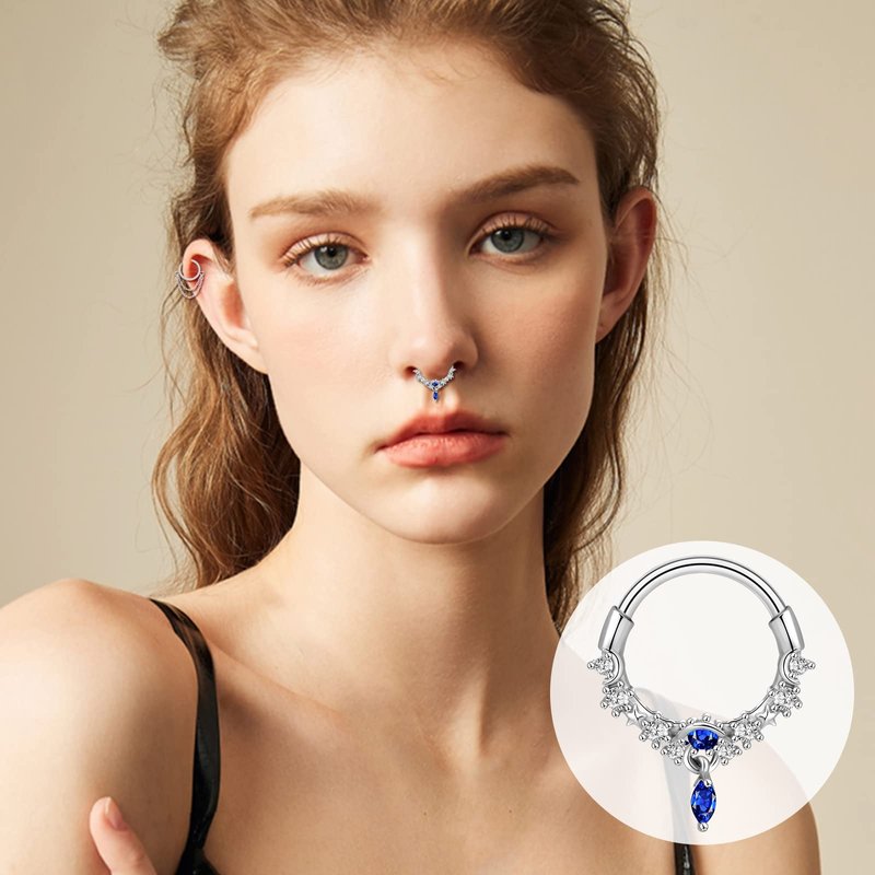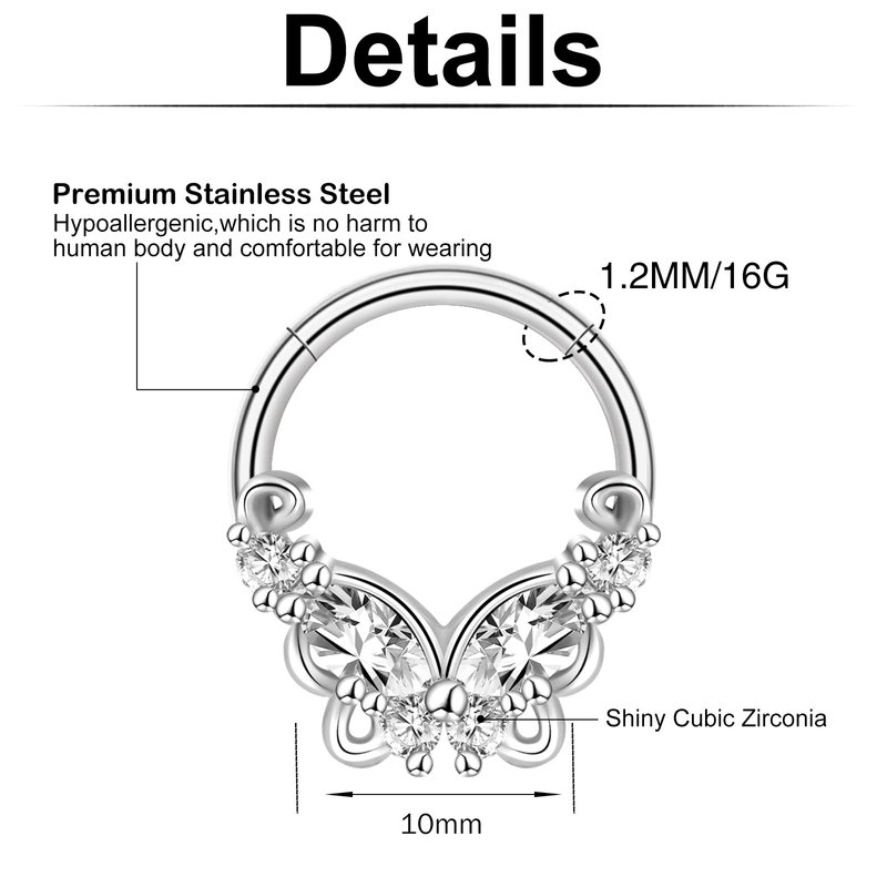 - MULTIPLE USAGES - These 16g septum ring can be used as septum clicker, daith piercing jewelry, lip piercing jewelry, nose piercings jewelry, half hoop cartilage earrings, ear piercing, piercing jewelry, tragus earrings, flat back earrings, nose rings septum, horseshoe septum rings, and other body piercing jewelry for women and men.