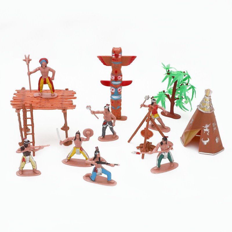 - Package includes: you will receive 12 indian warrior figures, 4 horses, 2 fences, 1 totem pole ,1 tree, 1 tee-pee (teepee) , 1 fire, 1 fish in pot,1 rack, 1 shack with ladder