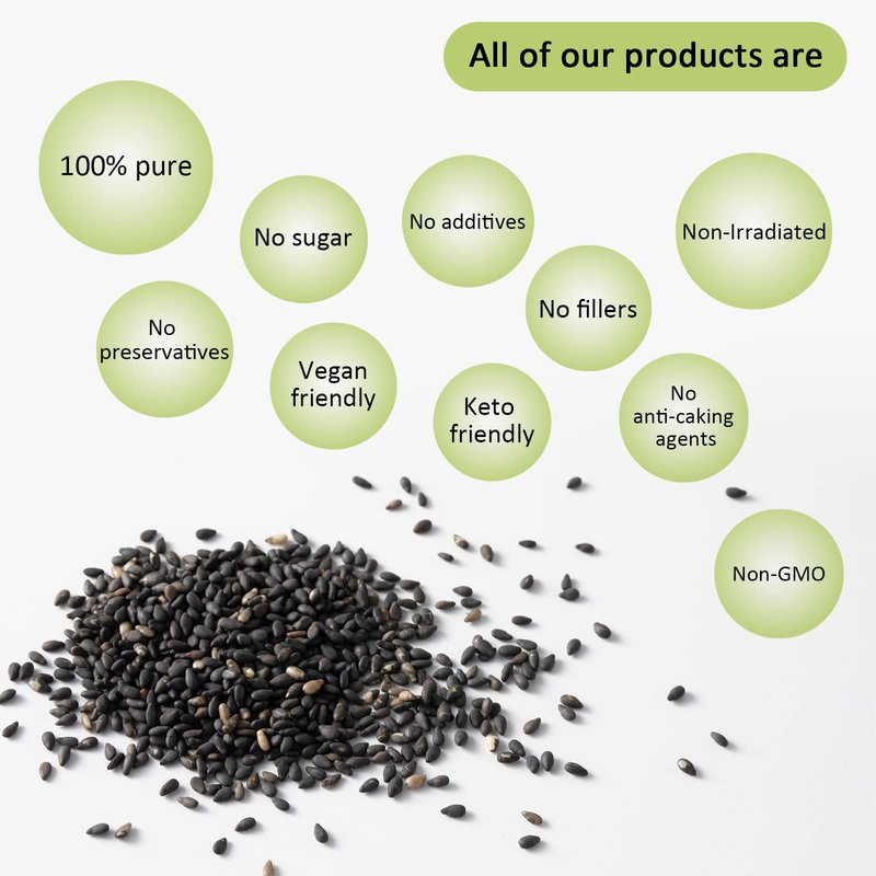 - 【PERFECT FOR ALL RECEIPES】Our Organic Black Sesame can be included in a your meals to boost their nutritional value, you can consume our sesame seeds by adding them in your cereals, salad, rice, noodles, sushi rolls, or any other dishes. You can mix our sesame powder with your yogurt or smoothie for a rich nutty flavor and can be used as a garnishment on top of many foods like biscuits, crackers, buns, bagels, etc.