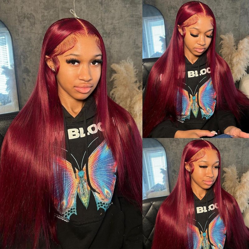 - The 99J burgundy lace frontal wig can make you Ebullient, Hot and Charming, All Eyes Should Be On You! It is a great choice to give gifts to relatives and families.