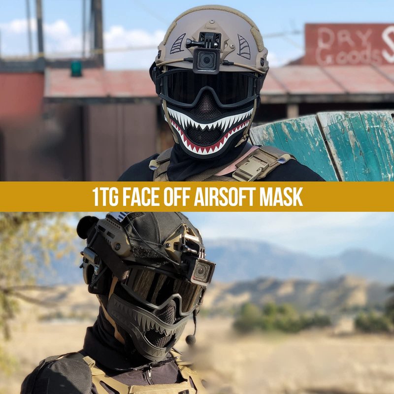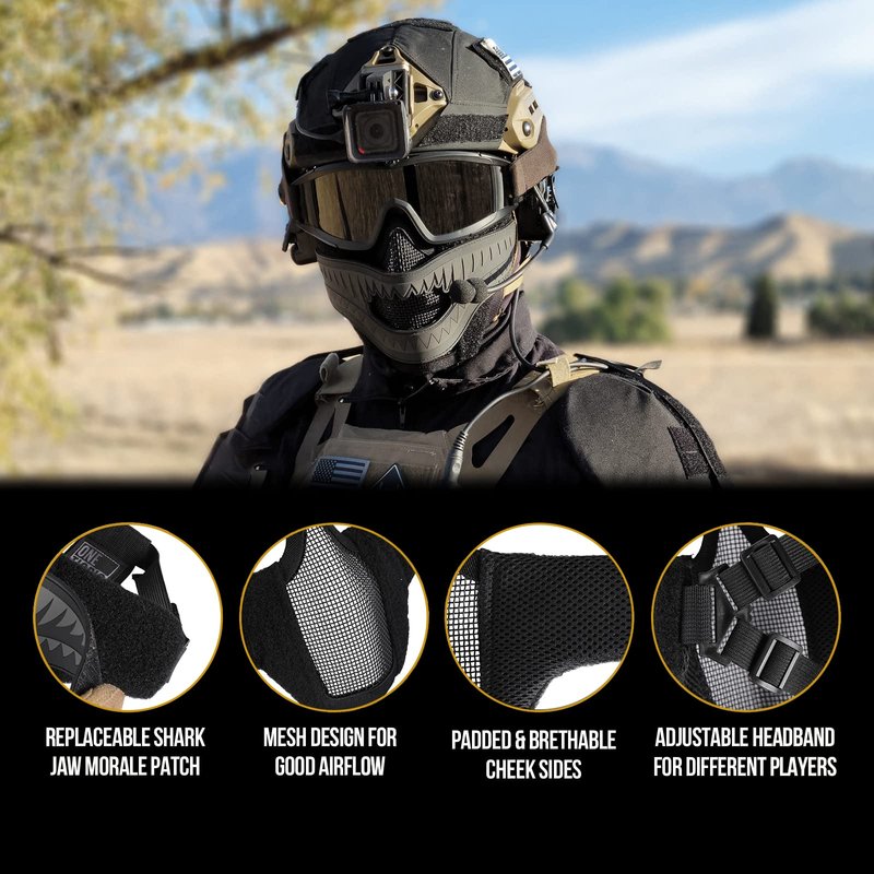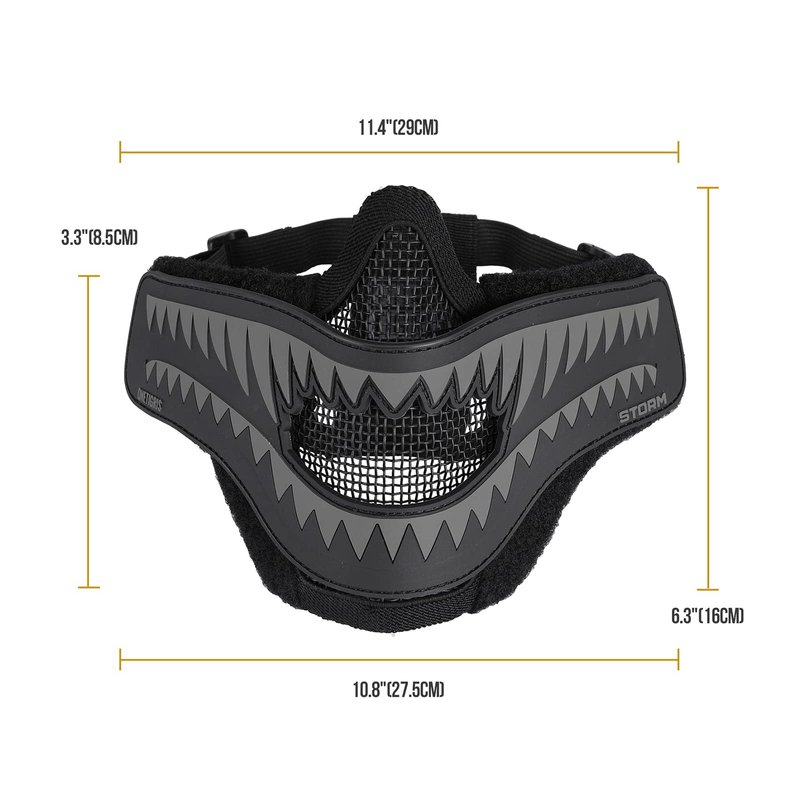 OneTigris X Storm Airsoft Mask Foldable Mesh Mask with Removable Shark Jaw Morale Patch (Black Teeth)