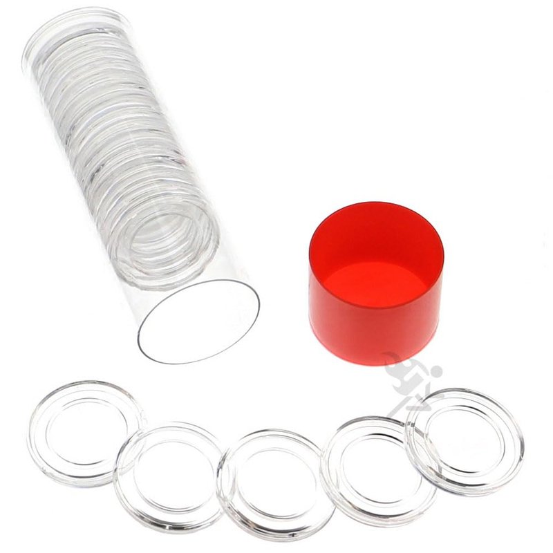 The capsule storage tubes are designed to store Air-Tite Brand coin holders. The plug lid closes inside the tube and does not have an air-flow hole or lubrication. Each tube will hold 20 completely closed coin holders. The tubes do not provide any extra protection for the coins, they are only a storage solution. Capsules are PVC free, archival safe, and are made from an acrylic plastic with a non-yellowing agent. This process results in a product that is hard, crystal clear, and smooth to the touch. Our capsules are securely packaged, un-assembled, within layers of foam to protect them during shipment.