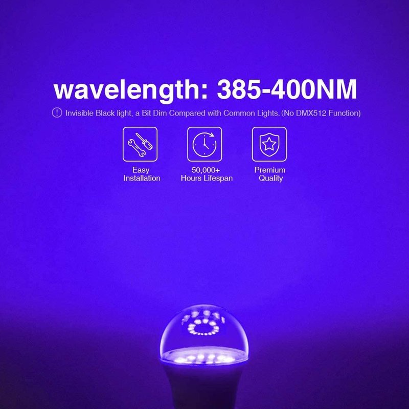 - Powerful Blacklight Bulbs: 120W Equivalent, with 18 high-quality LEDs and 270 degree wide beam angle, this black light bulb can cast bright and wonderful light to neon glow objects, creating an impressive atmosphere you don' t want to miss out.