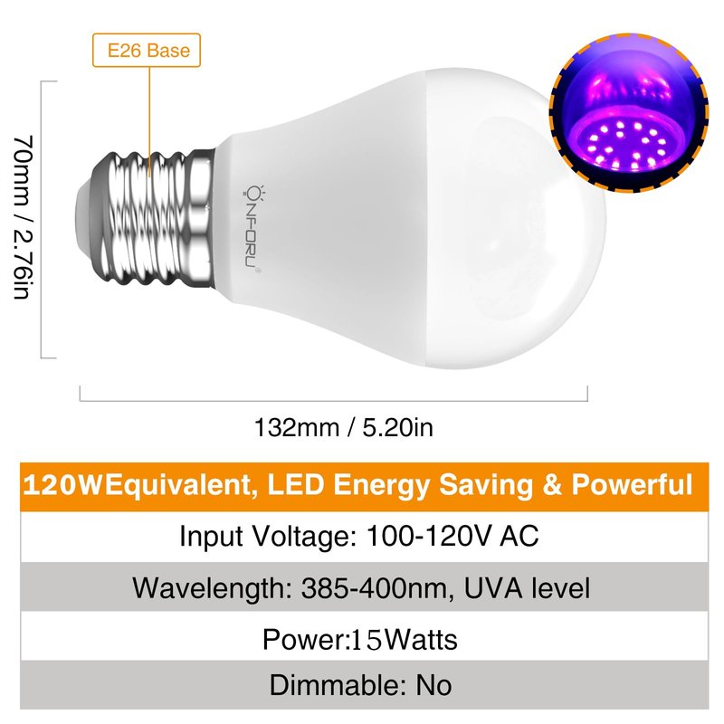 Onforu 15W LED Black Light Bulbs, A19 E26 120W Equivalent Blacklight Bulb for Glow in The Dark, Halloween Lights, 120V, Level 385-400nm, Blacklight Party, Body Paint, Fluorescent Poster
