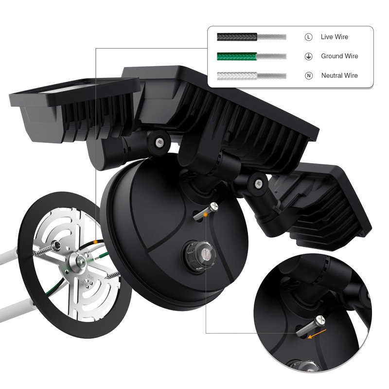 - 【EFFICIENT COOLING & LONG LIFESPAN】Made of high-quality aluminum housing material and a fin-type heat sink design at the back provides great heat dissipation to prolong LEDs lifespan. Dusk till dawn security light can easily be installed by following a few simple wiring steps.