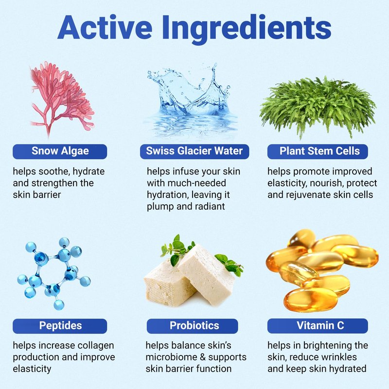 - POWERED BY NATURE AND SCIENCE: Infused with powerful ingredients like plant stem cells for improved elasticity, snow algae for skin structure enhancement, and Swiss glacier water for 24-hour hydration, our anti aging serum is designed to firm, plump, and tighten while being cruelty-free and free from parabens and artificial fragrances. This Face wrinkle cream for women and men will not clog your pores and it will not make your skin feel oily or greasy.