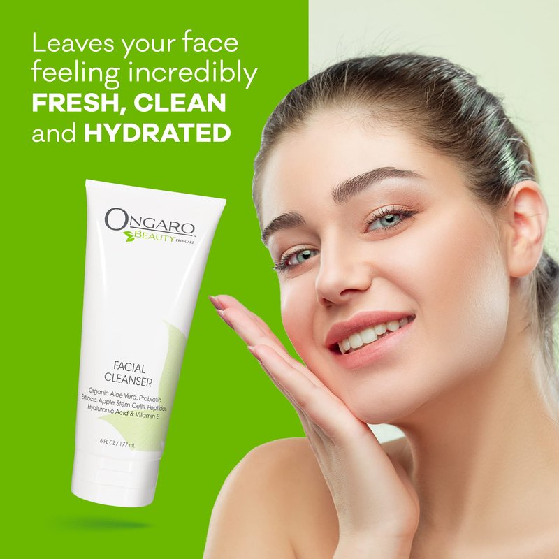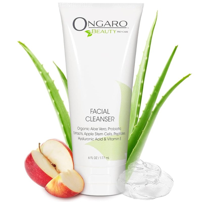 A hydrating cleanse with anti-aging benefits that leaves your skin feeling incredibly fresh, clean and supple. A Face Cleanser That Doesn’t Dry Out Your Skin Harsh detergents in many face washes can strip away the natural moisturizing oils in your skin. This can cause dryness, irritation, and inflammation. Our gentle face cleanser is made of milder ingredients that don't deplete your skin's essential oils. Improve Your Skin’s Ability to Better Absorb Products You will notice that your skin is smoother and softer and better absorbs your moisturizer and makeup. Makeup glides on smooth and stays fresh all day long. Nourishes and Hydrates with Powerful Active Ingredients Unlike regular water-based face washes, Ongaro Beauty uses a base of organic aloe vera, known as the miracle gel for skin that contains 18 of 20 amino acids found naturally in the body along with antioxidant vitamins. Combined with Apple Stem Cells, Probiotic Extracts and Peptides your clean skin will be instantly hydrated and renewed.