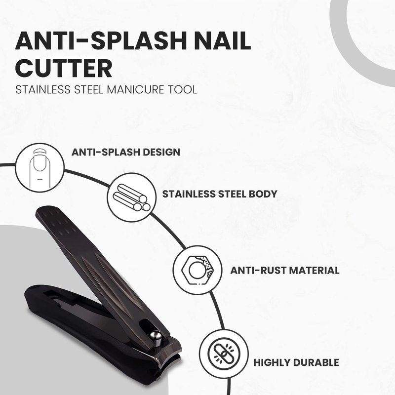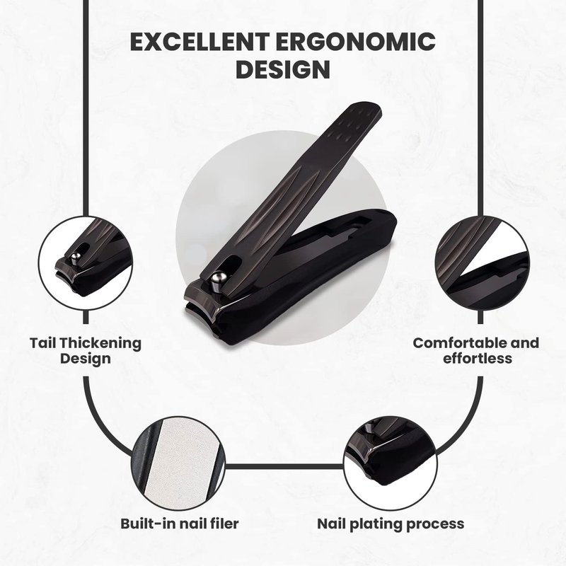 Ongle Precision Nail Clippers with Nail Catcher No Splash, Black Stainless Steel Manicure Tools