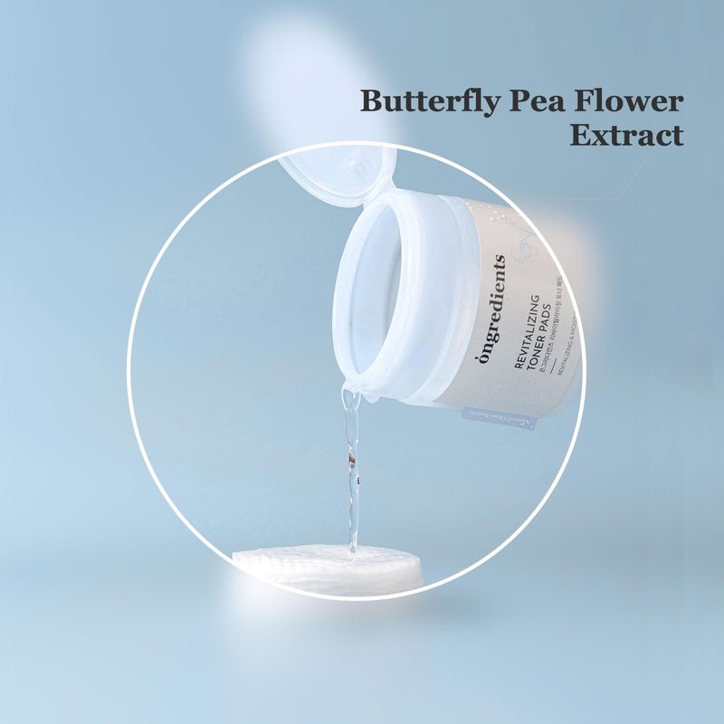 - Gentle Exfoliation: Ongredients Butterfly Pea Flower Tea Toner Pads feature a dual-pad design for effective toning and gentle exfoliation. Perfect for those with sensitive skin, these pads delicately remove dead skin cells, leaving your skin refreshed and revitalized.