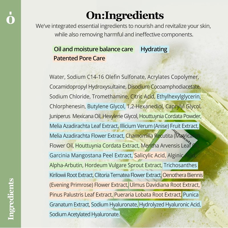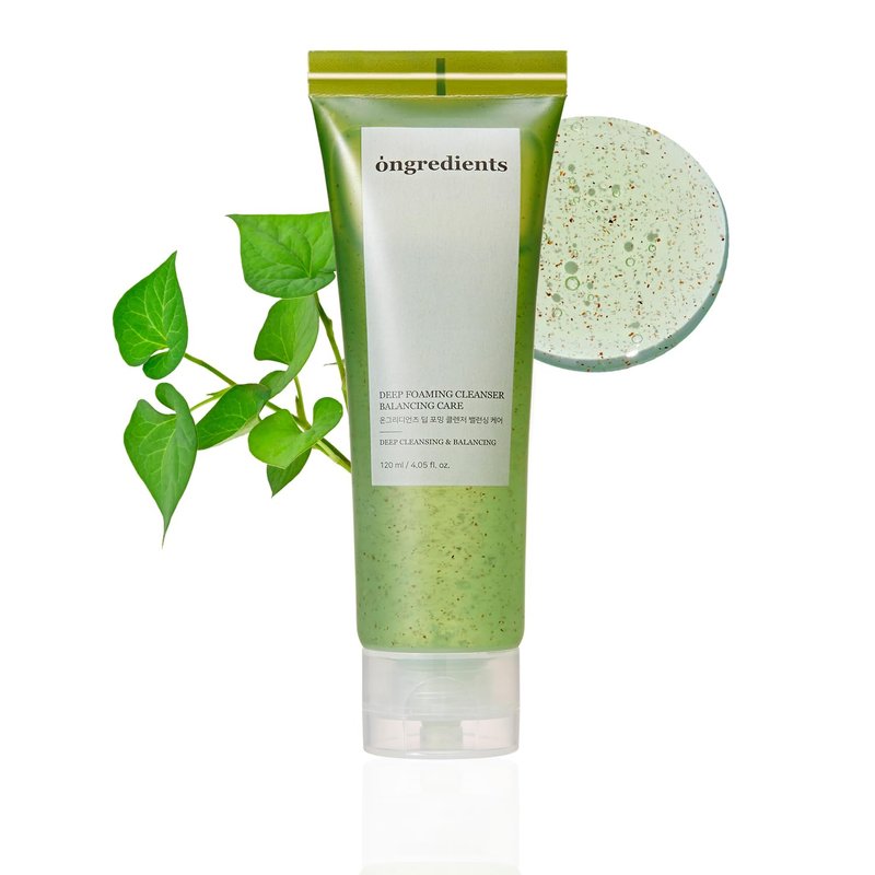 Introducing Ongredients Deep Foaming Cleanser Balancing Care, a transformative cleanser designed for moisture balance. This cleanser features Heartleaf particles, providing a unique cleansing experience. It effectively balances and maintains the ideal skin pH level after washing, thanks to its slightly acidic formula with a pH of 5.5. This ensures that the pH balance of dry skin is preserved after cleansing, promoting a healthy and moisturized complexion. The cleanser has a soft gel texture that creates a refreshing and mild foam. The foam delicately envelops the skin, gently cleansing the face and leaving it feeling smooth and clear. The cleanser is hypoallergenic and vegan, containing Heartleaf particles while excluding harmful ingredients. This ensures a mild cleansing experience suitable for sensitive skin, without causing any irritation.