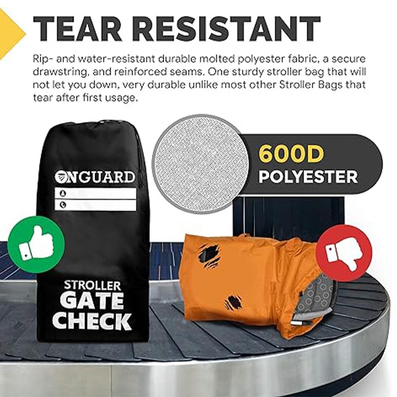 ONGUARD Waterproof Single and Double Stroller Bag for Airplane - Travel Stroller Cover - Airplane Stroller Travel System - Gate Check Stroller Bag - Baby Airplane Essentials - Black
