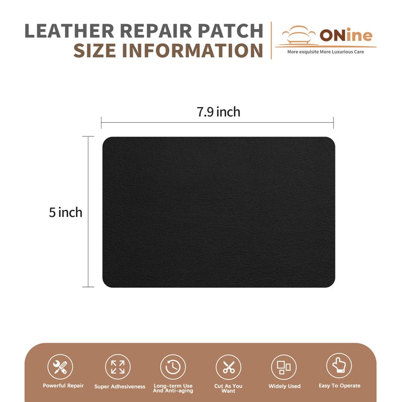 ONine Leather Repair Patch,Self-Adhesive Couch Patch,Available Anti Scratch Leather 5”X7.9”(12.7cm x 20cm) Peel and Stick for Sofas, Car Seats Hand Bags Jackets(New Black)