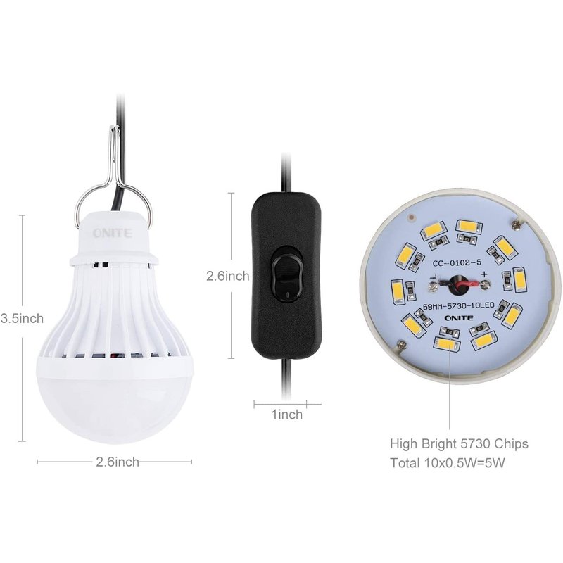Onite USB LED Light Bulb, 5W Warm White Camping Lantern, Portable Solar Powered Outdoor Light, Essential Hiking Survival Gear, USB Lamp for Backyard, Garage, Van, Tent, and Power Stations