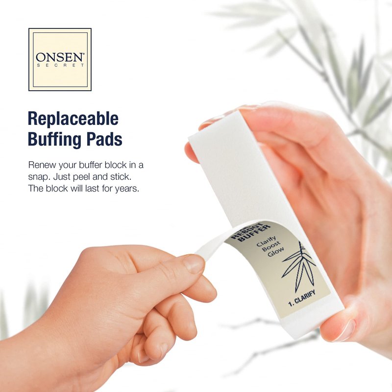 Onsen Secret Japanese Nail File Buffer and Shine Kit - Professional Nail File, 3-Way Nail Buffer Block w/Free Replacement Pads & Nail Strengthening Reboot Oil for Healthy Nails, Nail Reboot Kit, 1pk